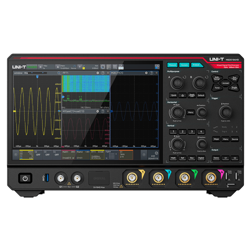 Zaprojektowany z myślą o nowoczesnych środowiskach testowych, MSO5104HD łączy 4 kanały analogowe i 16 kanałów cyfrowych z głęboką pamięcią do 500 Mpts, integrując dziewięć instrumentów w jednym, ekonomicznym pakiecie. Intuicyjny 10,1-calowy pojemnościowy ekran dotykowy z obsługą gestów usprawnia pracę i zwiększa produktywność. Czy pracujesz w elektronice mocy, testowaniu półprzewodników, czy zaawansowanych aplikacjach R&D, MSO5104HD zapewnia dokładność pomiaru, analizę i intuicyjną obsługę, aby rozwiązać najtrudniejsze problemy integralności sygnału.